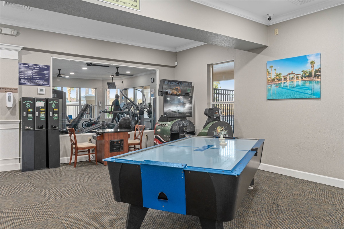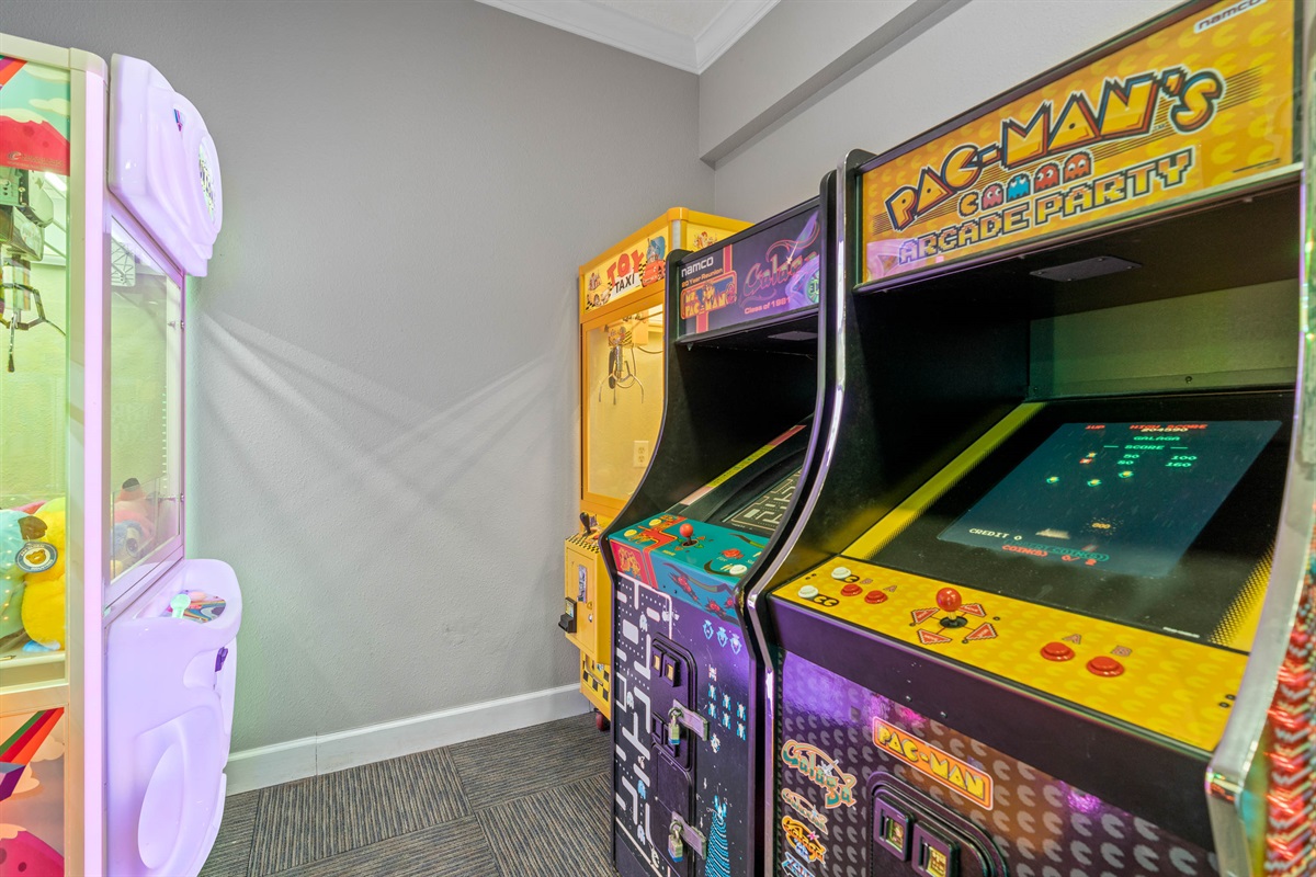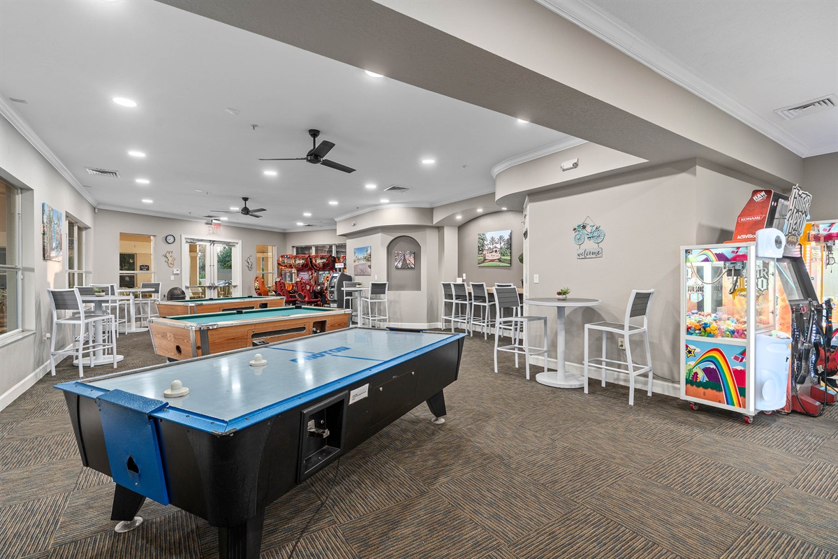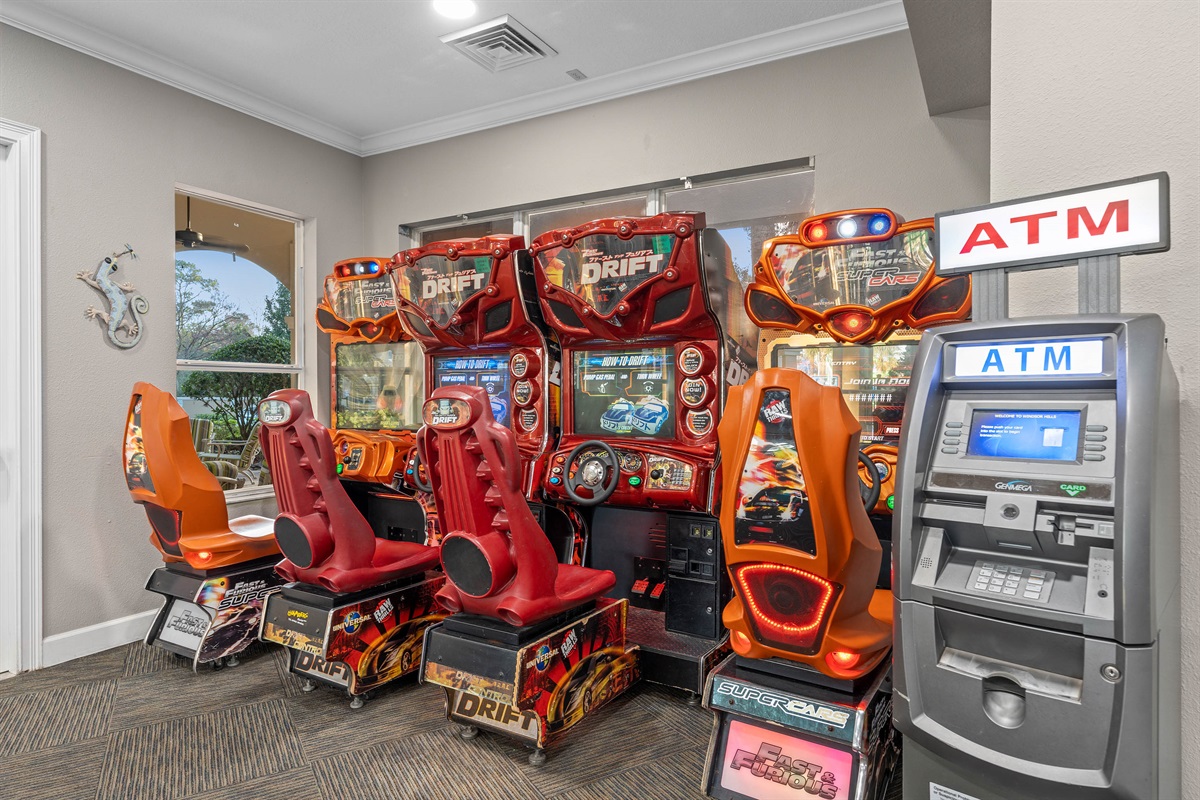 Clubhouse with movie theater, arcade, game room, ATM, and market & grill