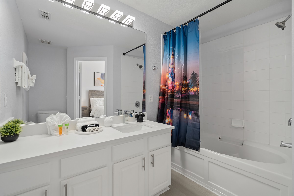 3 Bedrooms • 3 Bathrooms 3 Baths • Sleeps 1-8Welcome to Enchanted Oasis, your luxury retreat just 5 minutes from Walt Disney World and 20 minutes from Universal Studios and SeaWorld. Located in the highly sought-after Windsor Hills Resort, this newly modern villa blends modern design, comfort, and convenience with a private pool and resort amenities for the perfect Orlando getaway.